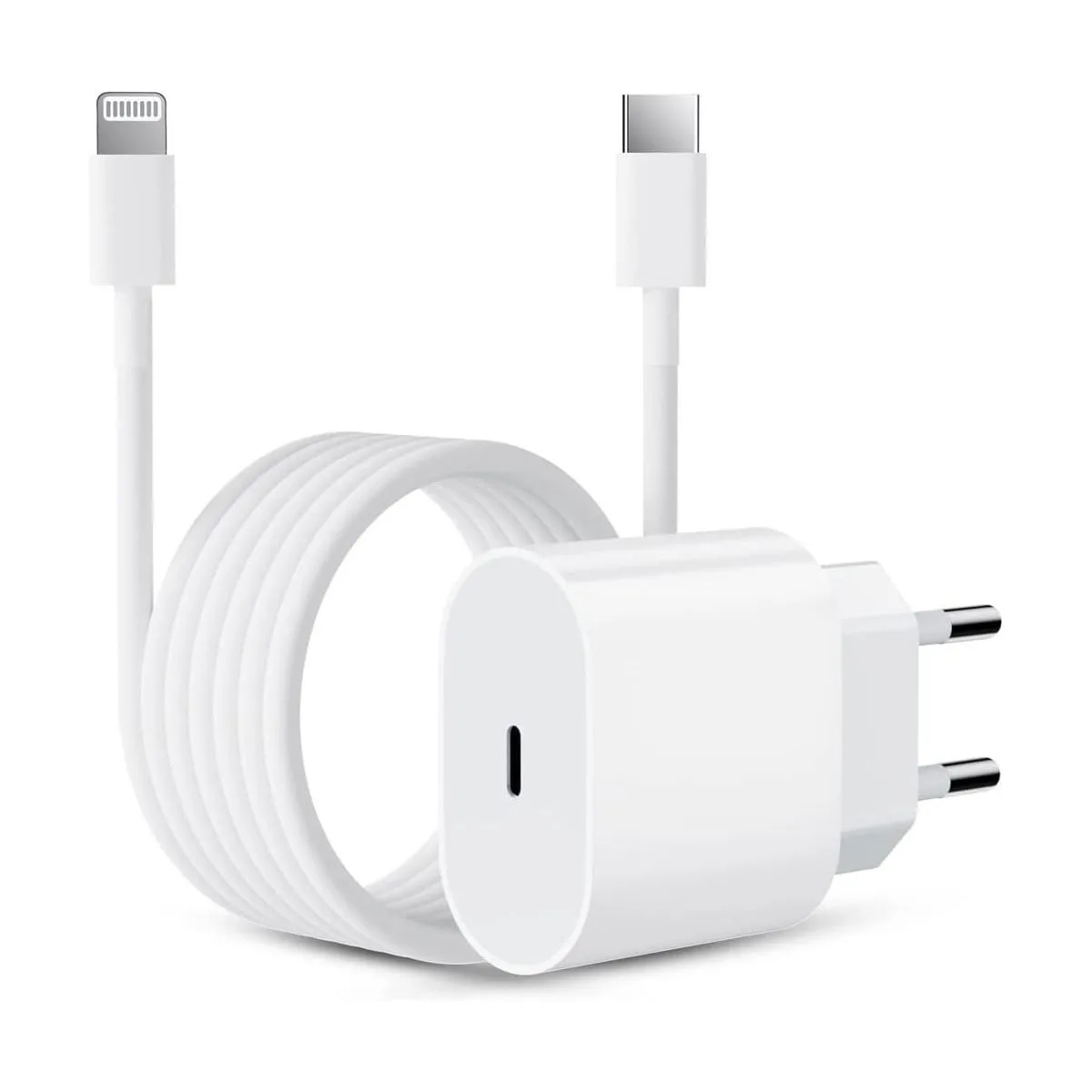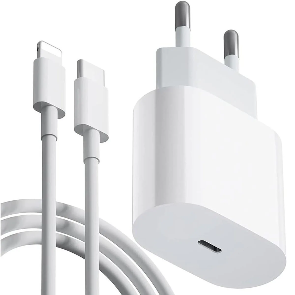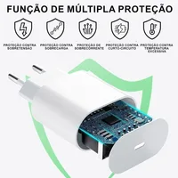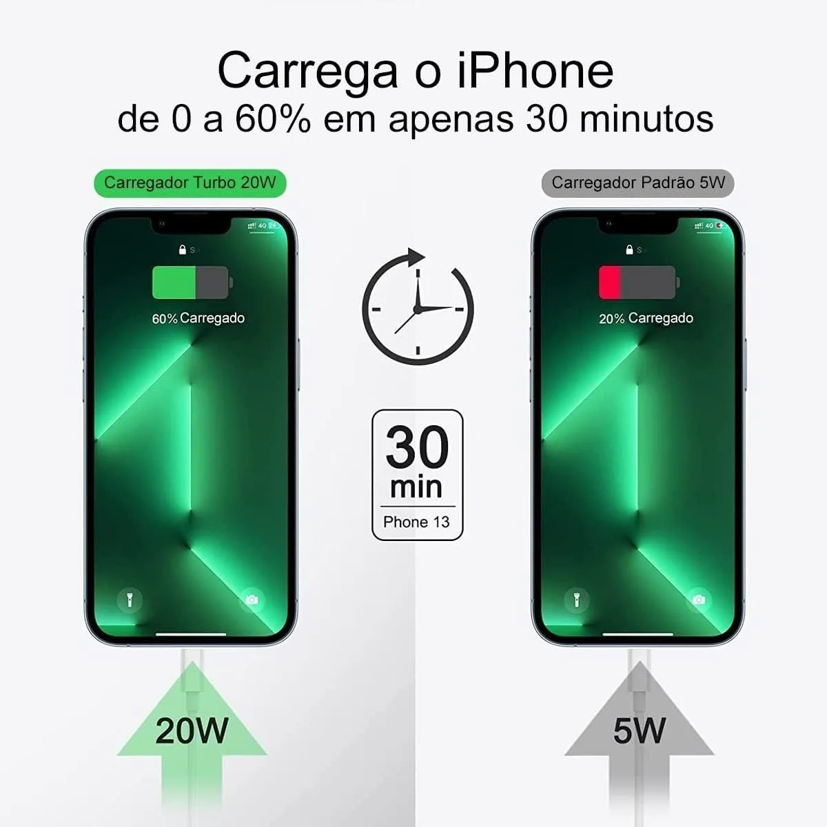 Fonte Carregador de Celular Turbo Tipo-C PD 20W + Cabo de Dados Tipo-C Compatível Com Lightning P/ iPhone