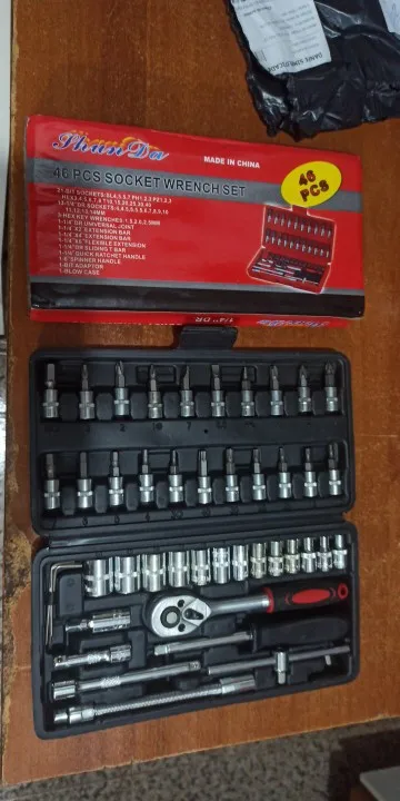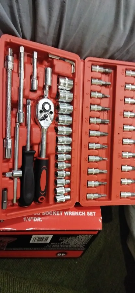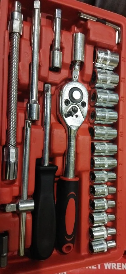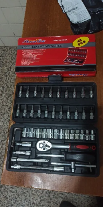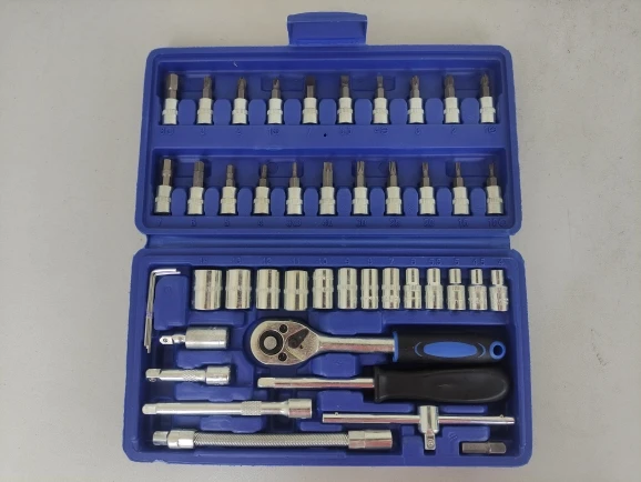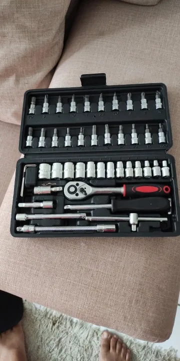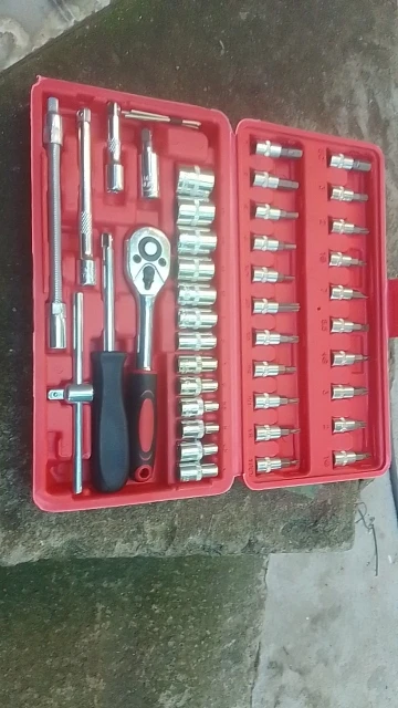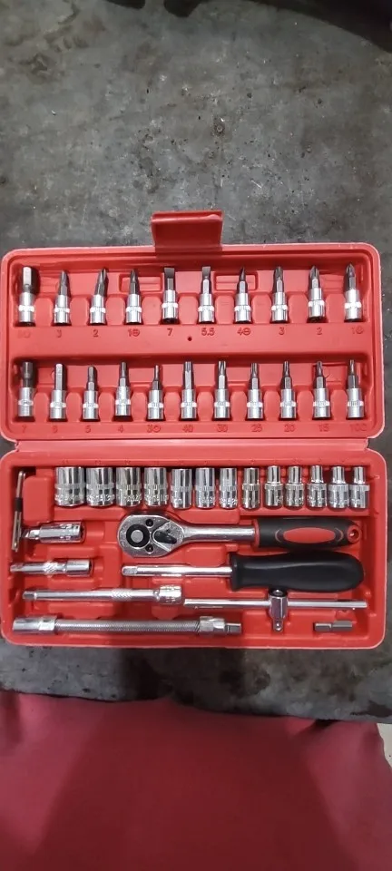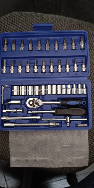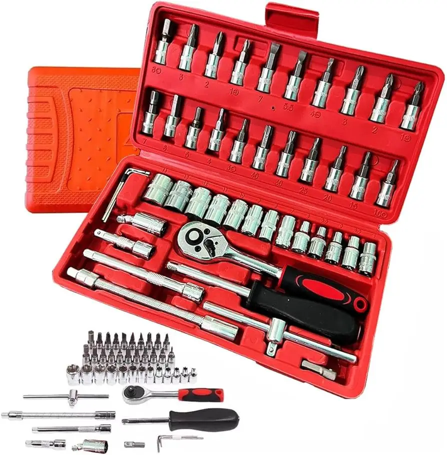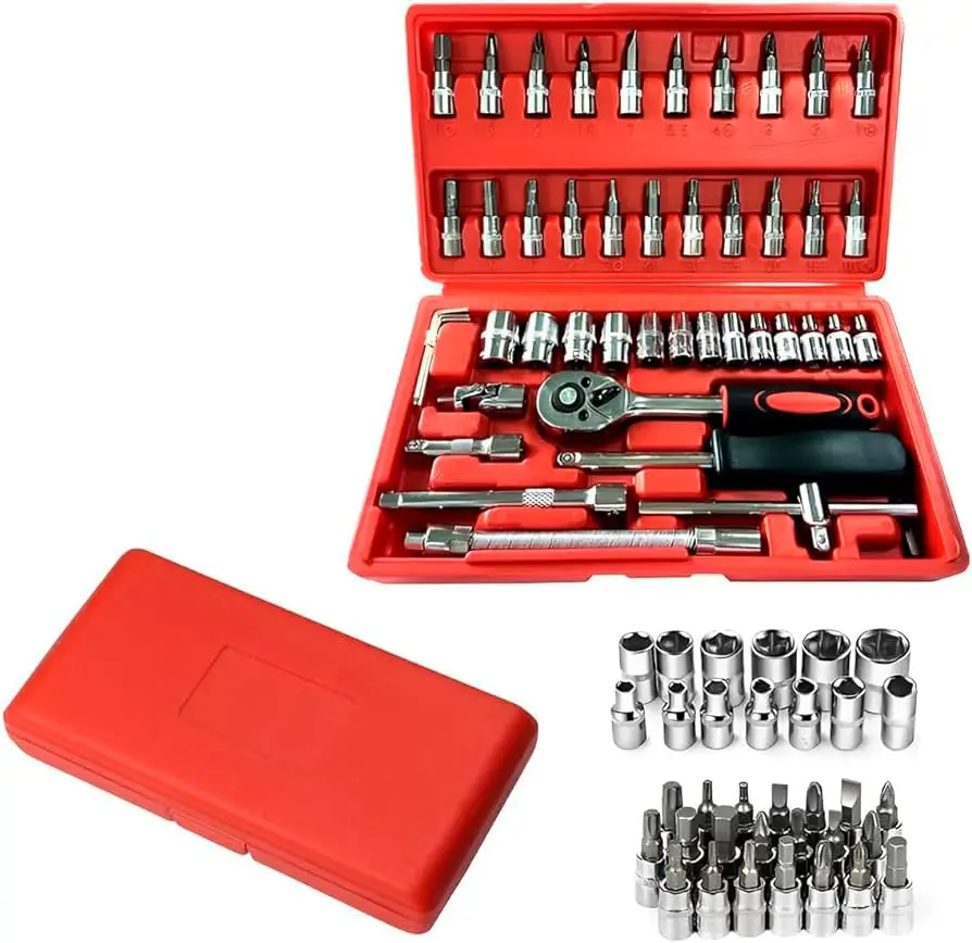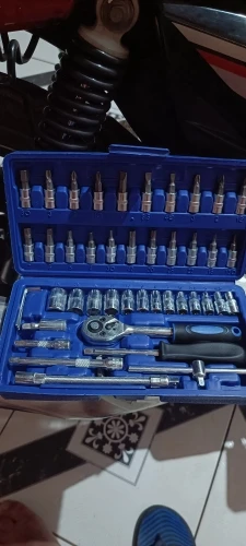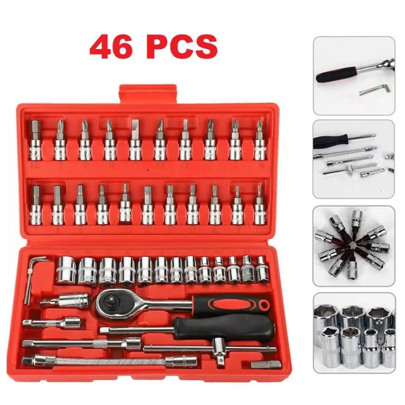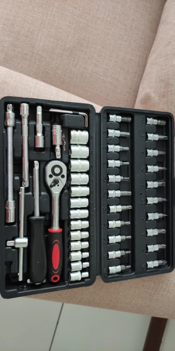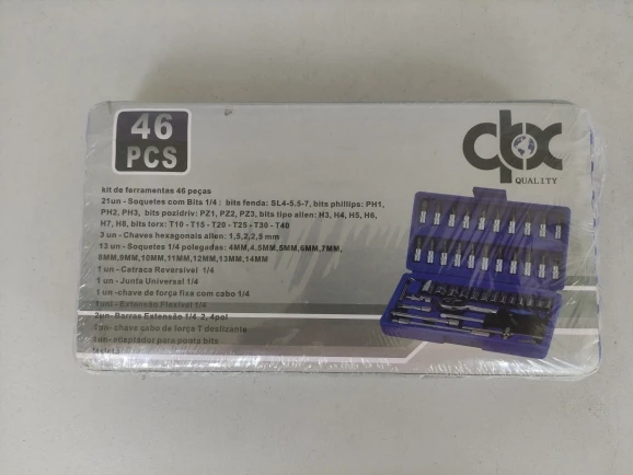 O kit de ferramentas com 46 peças é uma maleta com ferramentas uteis para manutenções que podem ser feitas em ambiente doméstico, para veículos, motocicletas e outros.