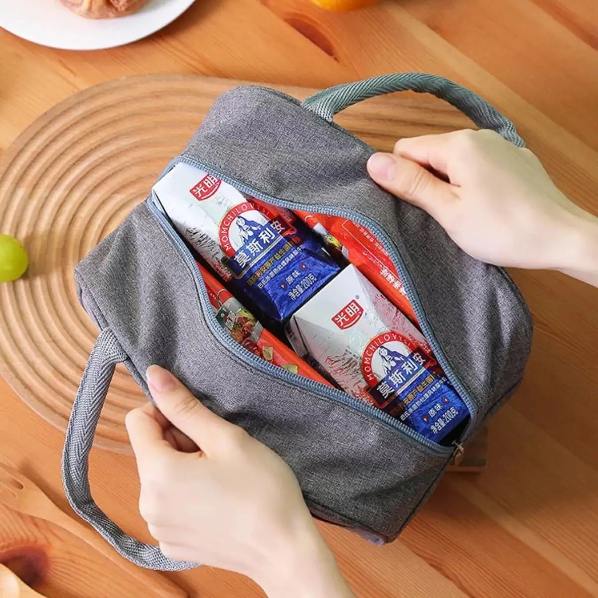 O material por dentro é cobertura total da folha de alumínio de isolamento técnico, que é resistente saudável e resistente à temperatura, pode ser mandido aquecido e pode ser refrigerado